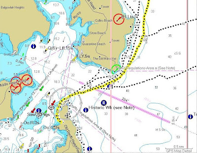 After weaving between the congested moorings in search of the elusive Kingfish, the view opened up towards Broken Bay. Lion Island and the heads are in the middle distance. A slight head wind boding well for the opposite side of Barrenjoey and the passage down the coast.